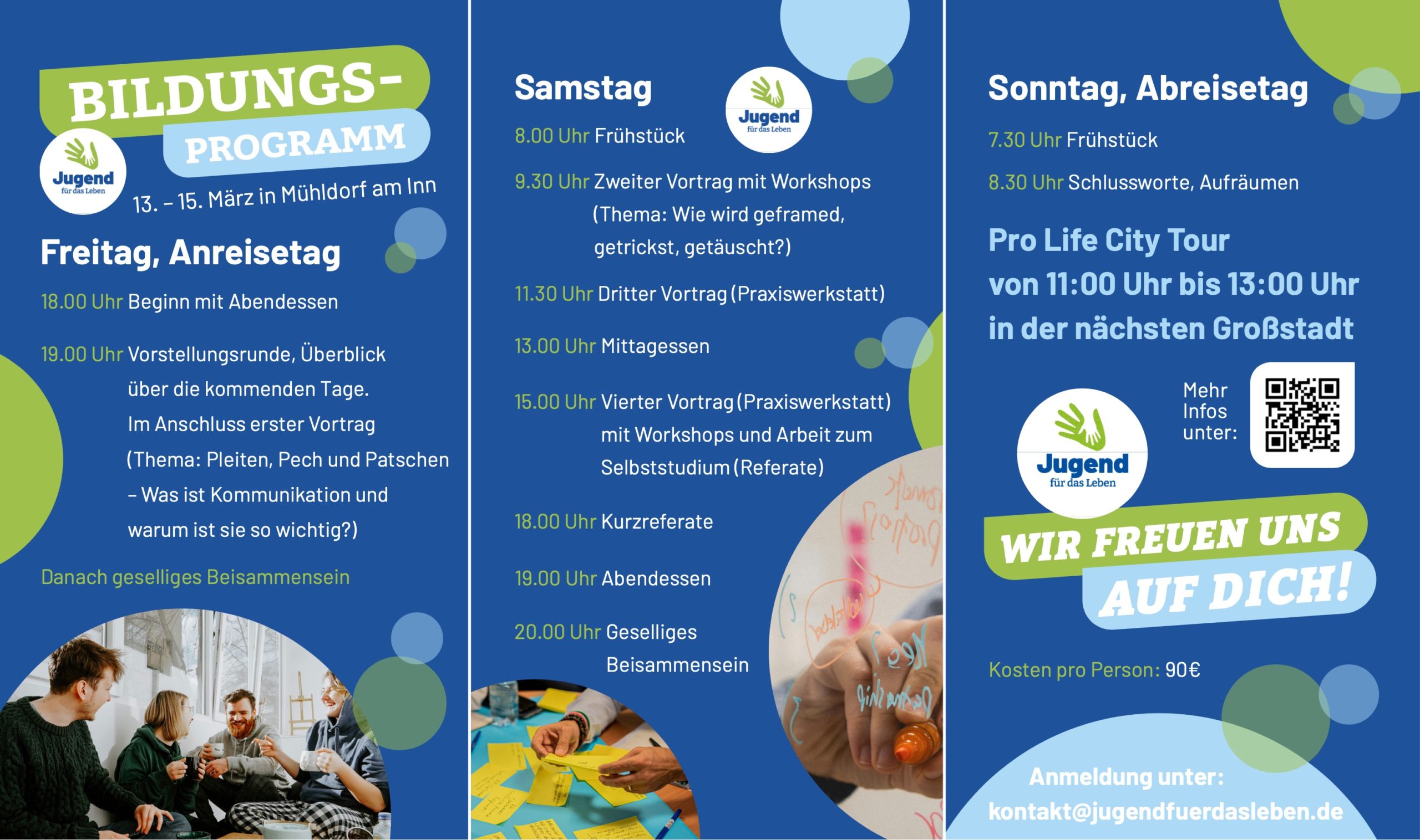 Du willst dich engagieren – für die Menschenwürde, für das Recht auf Leben, für Schwangere in Not? Komm‘ zu unserem Bildungscamp nach Mühldorf am Inn!
